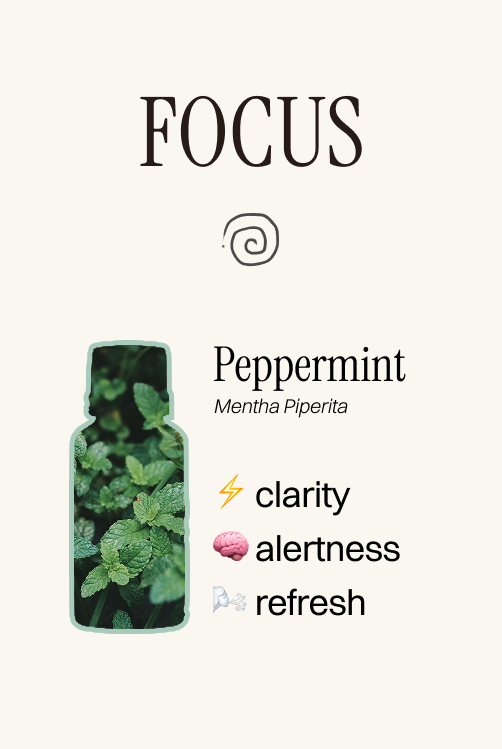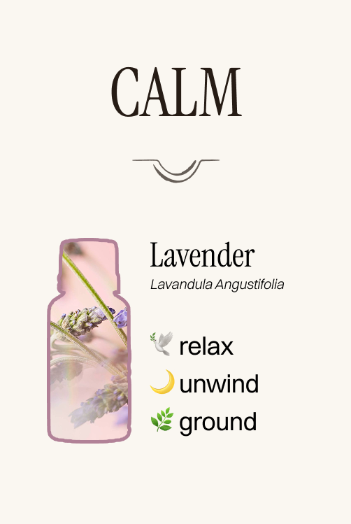 Lavender for rest. Peppermint for focus. Vetiver for grounding.